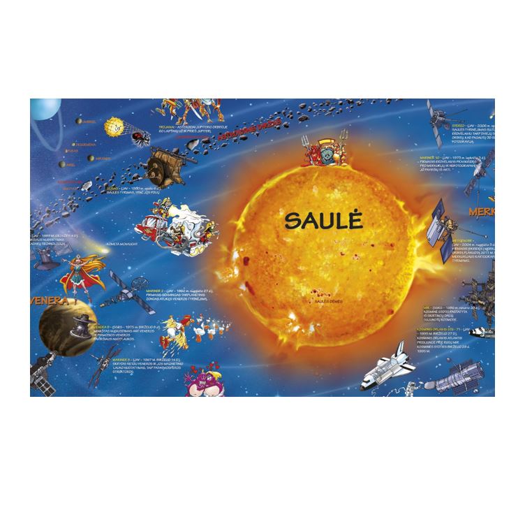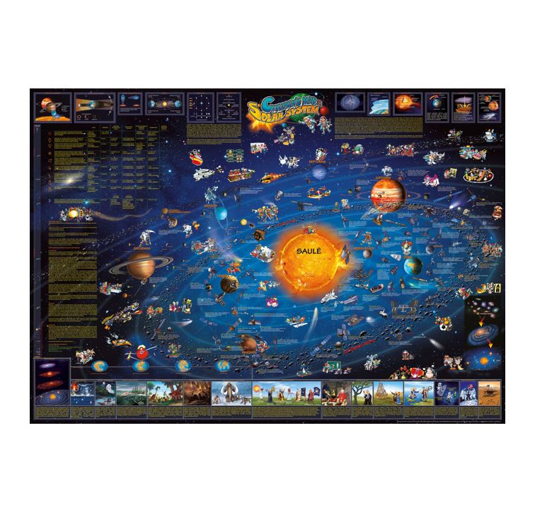 Išskirtinai sukurtas jauniems astronomams ir astronautams, norintiems sužinoti apie pasaulį už Žemės ribų. Šis glaustas, informatyvus Saulės sistemos vaizdas vaizduoja planetas, mėnulius, meteorus, kometas ir daugybę kitų įdomių objektų.